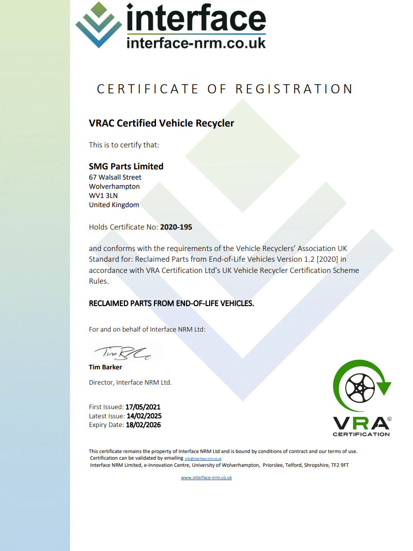 SMG Parts LTD is a well-established family business based in the West Midlands. We are licenced by the Environment Agency to run an Automotive Treatment Facility for End of Life Vehicles (ATF-ELV) The company was formed by Shahrokh Nabati in 2013 and is currently employing 10 staff, recycling hundreds of vehicles each year. The company’s 2-acre site is located in Wolverhampton and the large 23,000 sqft warehouse is in close proximity to the Wolverhampton train station and city centre. Over the years, SMG Parts LTD has earned an enviable reputation for good business practice and customer service, in what is recognised to be a highly competitive industry.